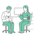 診察室で女の子(幼児~小学生)を連れた母親を診察する、女性医師(小児科医)のイラスト2点セットです。 女の子が落ち着いている「定期検診・アレルギー相談シーン」と、顔色が悪くぐったりしている「発熱・感染症相談シーン」を並べています。 「学校検診や予防接種」と「風邪・インフルエンザでの受診」の使い分けや、登園・登校の目安(出席停止期間の解説)、あるいは「こんな症状が出たら病院へ」という判断基準を示す記事の図解として最適な比較素材です。
