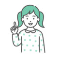 子供・赤ちゃん笑顔で手のひらを上に向け(右手を差し出し)、案内や紹介、ポイントの解説をしている小さな女の子(幼児・小学生)の上半身イラストです。ツインテールで水玉模様の服を着ています。小児科や小児歯科の院内案内、保育園・幼稚園の施設・入園紹介、子ども向けサービスの解説、学習塾のコース案内など、子どもに関連する情報を優しくナビゲートするシーンに最適です。親しみやすく安心感を与える、清潔感のあるシンプルな線画デザインです。