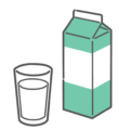 アイテム・アイコンシンプルな線画で描かれた、牛乳パック(1000mlサイズ)のイラストです。コップを省いたパッケージ単体のデザインなので、スーパーでの買い物リスト、冷蔵庫のストック管理、紙パックのリサイクル(資源回収)、あるいは料理の材料としての「牛乳」など、幅広い用途で使いやすくなっています。栄養指導におけるカルシウム・タンパク質源のアイコンとしても最適です。