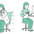 介護・福祉診察室で白衣(ドクターコート)を着た女性医師が、高齢の女性患者(シニア)の胸部を聴診しているイラストです。地域医療、一般内科、循環器内科での診察シーンや、訪問診療(在宅医療)、介護施設での回診、高齢者の健康管理などのイメージに最適です。同性の女性医師によるきめ細やかな診察は、患者さんの安心感や信頼関係を表現するのに適しています。