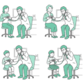 人物・属性正面を向いて微笑む、若い女性(成人女性)の上半身イラストです。医療機関の問診票、クリニックの案内パンフレット、健康診断の資料、患者様への説明用スライドなど、幅広い用途で使いやすいシンプルな線画デザインです。