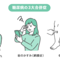検査・測定糖尿病の治療を放置した際に起こる「三大合併症(しめじ)」をまとめた図解イラストセットです。 1. し(神経障害):手足のしびれ、痛み、感覚麻痺 2. め(網膜症・目):目のかすみ、視力低下、眼底出血 3. じ(腎症・腎臓):足のむくみ、タンパク尿、腎不全 これらの進行プロセスや危険性を患者さんに説明するための教育用資料、病院のパンフレット、医療・健康系Webメディアの解説画像として最適です。