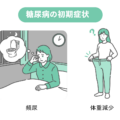 糖尿病の初期段階で見られる自覚症状を4コマで解説したイラストセットです。 1. 多飲・口渇:異常に喉が渇き、水をガブガブ飲む 2. 多尿・頻尿:夜中に何度もトイレに起きる 3. 体重減少:食べているのに急に痩せる、服が緩くなる 4. 全身倦怠感:体がだるい、疲れが取れない 健康診断の案内や、生活習慣病のセルフチェックシート、医療機関の「こんな症状ありませんか?」という啓発ポスターなどに最適な、分かりやすく親しみやすい図解素材です。
