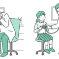 白衣を着用した男性医師が、乳幼児(赤ちゃん)に対して「聴診」を行っているシーンの「機嫌が良い時(通常)」と「泣いている時(体調不良・拒否)」を並べた比較用イラスト素材です。 左側は定期健診や予防接種の予診といった穏やかなシーン、右側は発熱で機嫌が悪い時や、病院を怖がって泣いてしまうリアルな診察シーンを描いています。 「乳幼児健診」と「病気受診」の違いの解説や、子供の病院嫌い対策、RSウイルスやインフルエンザなどの感染症流行時のホームケアガイドなどに最適です。