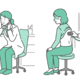 診察室でスクラブ(医療用ユニフォーム)を着用した男性医師が、体調不良の妊婦(妊娠中の女性)の背部(背中)に聴診器を当てて診察をしているイラストの「異常あり・体調不良」バージョンです。妊婦は脂汗(冷や汗)をかき、呼吸が苦しそうな様子です。医師も真剣で深刻な顔つきをしており、妊娠性喘息の悪化、重症肺炎、周産期心筋症、あるいは肺塞栓症(エコノミークラス症候群)の疑いなど、母子ともに危険が迫る緊急性の高いシーンを描く素材として最適です。妊婦さんへの注意喚起や、医療従事者向けの周産期救急マニュアルなどで重宝されます。