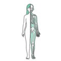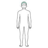 上半身・体幹女性の全身(正面)のシルエットに、脳と子宮・卵巣を描き込んだ人体図モデルのイラストです。脳からの指令で分泌される女性ホルモンの仕組み、生理痛(PMS)、更年期障害、自律神経の乱れなど、婦人科系の疾患やメンタル不調のメカニズムを解説する図解ベース素材として非常に重宝します。クリーンな線画デザインのため、矢印を引いてホルモンの流れを説明したり、テキストを追加したりといった加工も簡単に行えます。