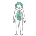 上半身・体幹女の子(子供・幼児)の全身(正面)を左右で分割し、右半身(向かって左)を体表のシルエット、左半身(向かって右)を骨格(スケルトン)で描いた人体図モデルのイラストです。体表のラインと骨の位置関係が直感的にわかるため、小児科や整形外科での「成長痛」や「若木骨折」のメカニズム解説、整体院などでの「子供の姿勢悪化(猫背やスマホ首)が発育に与える影響」を図解するベース素材として非常に重宝します。