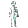 上半身・体幹男の子(子供・幼児)の全身(正面)を描いた人体図モデルの3点セットイラストです。プレーンな体表シルエット、肺や心臓・胃腸などの主要な内臓、頭蓋骨や骨盤などの全身骨格の3パターンが揃っており、小児科クリニックのWebサイトや育児・健康系ブログでの図解ベース素材として非常に便利です。小児特有の病気(感染症や胃腸炎など)の部位解説や、子供の骨の成長・怪我のメカニズム説明など、記事の用途に合わせて幅広く使い分けができます。