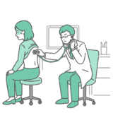 検査・測定足のすね(脛骨のあたり)を指で強く押して、むくみの程度を確認しているイラストです。 指を離した後にへこみが戻らない「圧痕性浮腫」のセルフチェック方法を描いています。 糖尿病の合併症(糖尿病性腎症)や腎不全、心不全、肝硬変などによる病的浮腫の早期発見や、立ち仕事や妊娠中、塩分の摂りすぎによる日常的な足のむくみの解説素材として幅広くご利用いただけます。