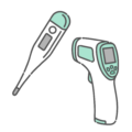 アイテム・アイコン肌に触れずに体温を測定できる「非接触体温計(赤外線体温計)」のイラストです。 トリガー(引き金)を引いて測定するガンタイプの形状で、液晶画面や操作ボタンもシンプルに描いています。 感染症対策のポスター、イベントや店舗入り口での検温協力のお願い、保育園や学校での毎日の健康チェック、新しい生活様式のマニュアルなどに最適です。 「ピッと検温」のイメージとして、あらゆる業種の案内物に使いやすいデザインです。