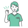 緑色のスクラブ(医療用ユニフォーム)を着た、若い女性医療従事者が目を丸くして口元に手を当て、驚いたり焦ったりしている上半身イラストです。クリニックのWebサイトや健康系・美容系ブログでの「予期せぬ症状」「間違ったケアへの注意喚起」「見落としがちなポイント」など、読者にハッとしてもらいたい、関心を惹きつけたいシーンに最適です。女性看護師をはじめ、女医、理学療法士(PT)、歯科衛生士などのキャラクターとして、インパクトのある表現が可能です。