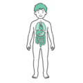 男の子(子供・幼児)の全身(正面)のシルエットに、頭蓋骨や肋骨、骨盤などの全身骨格を描き込んだ人体図モデルのイラストです。体表と骨の位置関係が直感的にわかるため、小児科や整形外科での「子供特有の骨折(若木骨折など)」「成長痛」「肘内障(腕が抜ける症状)」の解説、子供の姿勢悪化(猫背やストレートネック)が発育に与える影響を図解するベース素材として非常に重宝します。クリーンな線画デザインのため、痛む関節部分を赤く塗ったり矢印を引いたりといった加工も簡単に行えます。