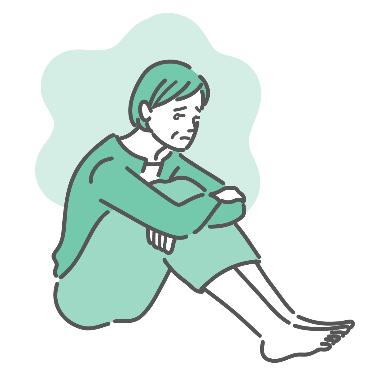 うつ・メンタル不調 抑うつ・情緒不安定で座り込む女性のイラスト(更年期・メンタルヘルス)