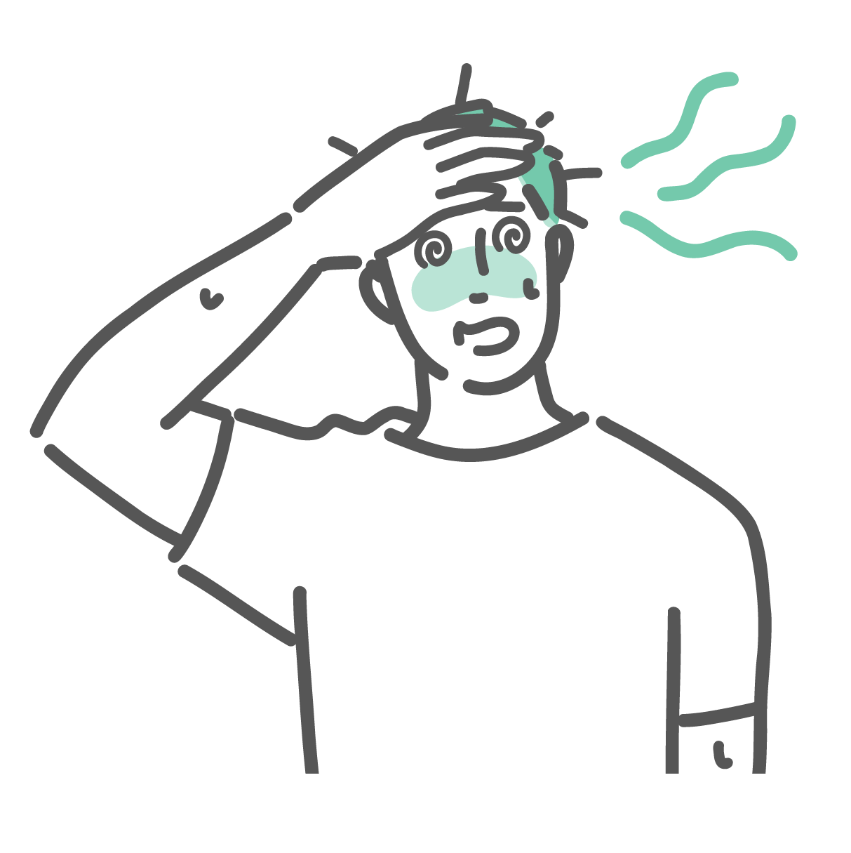 季節・アレルギー症状 熱中症による発汗・高熱(ほてり)で苦しむ男性のイラスト