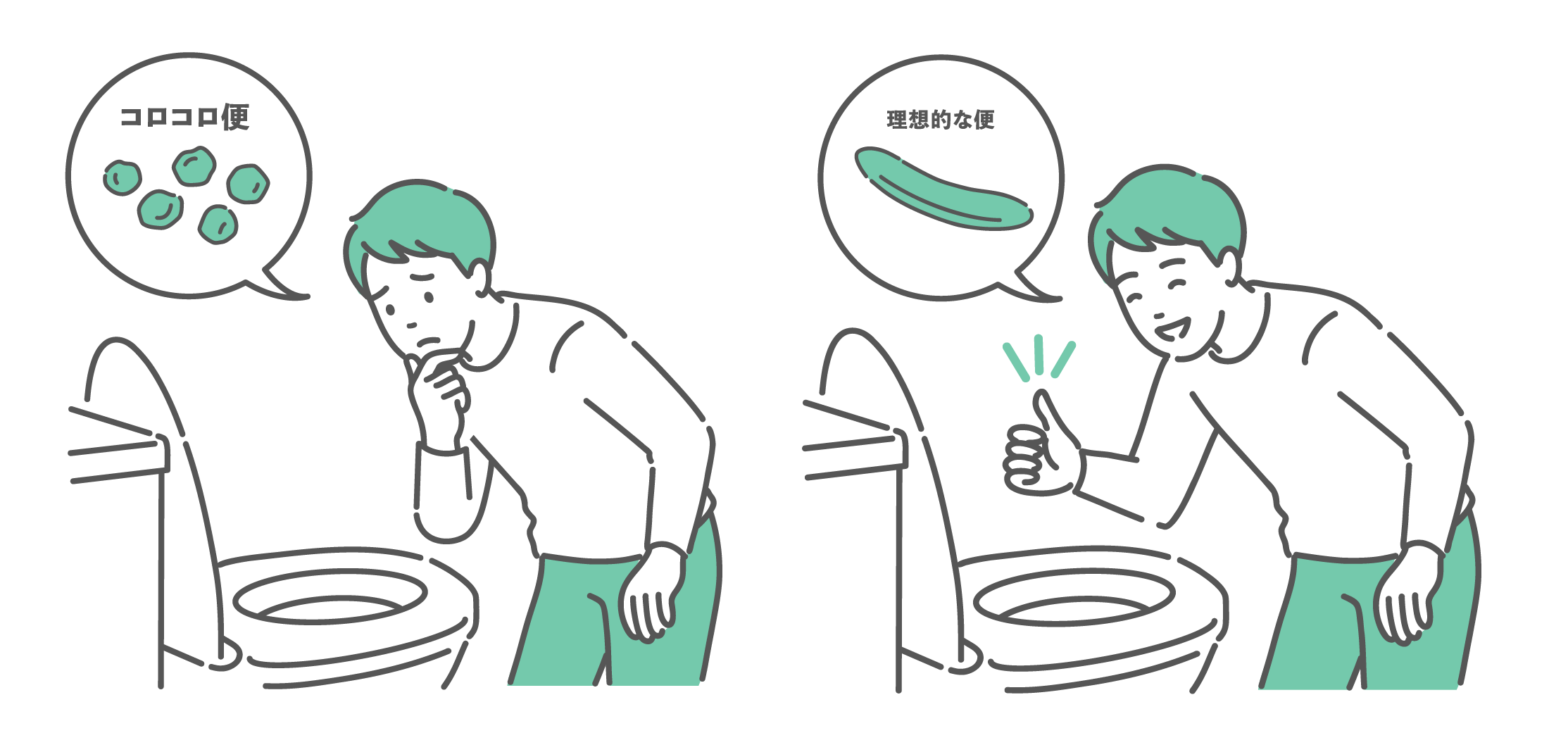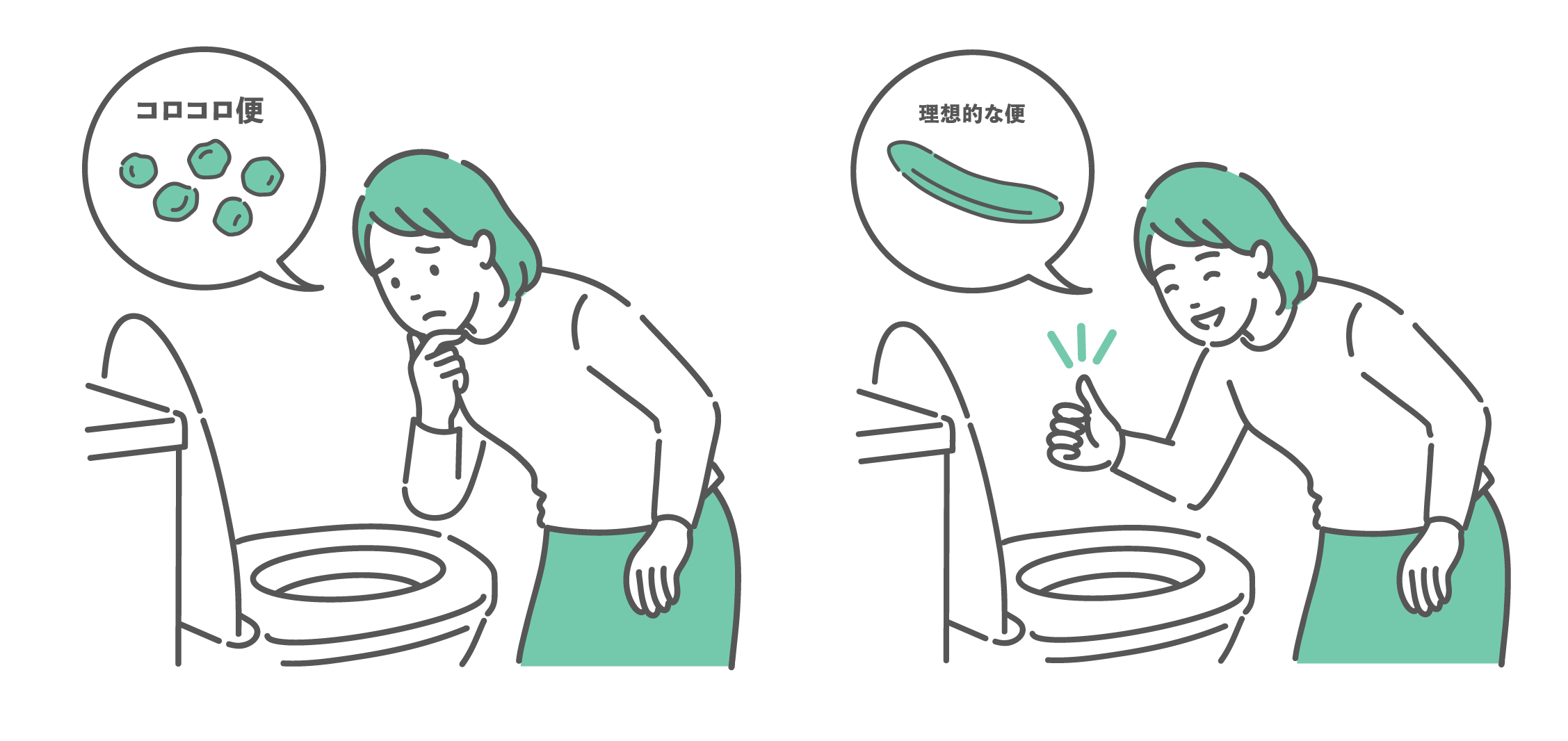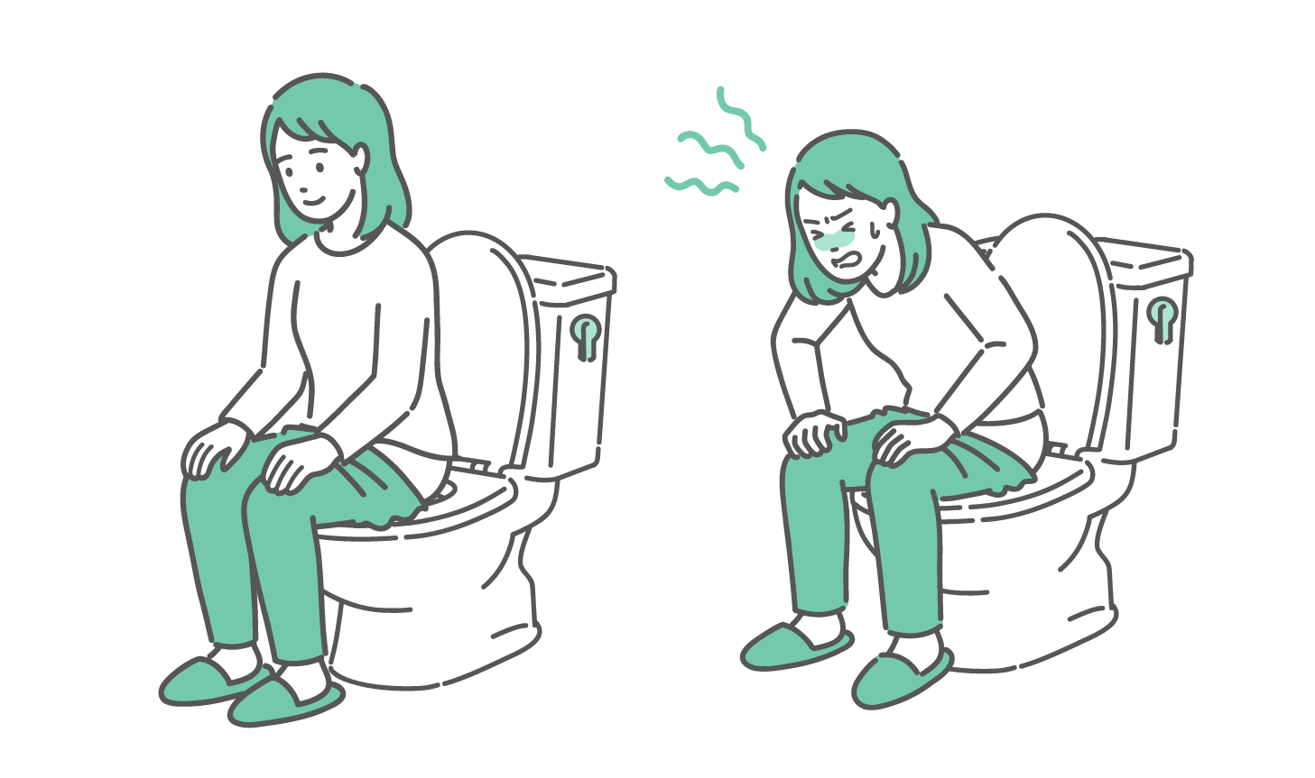 ダイエット・美容 トイレでの「快便(理想の状態)」と「便秘・腹痛(悩みの状態)」の比較イラスト
