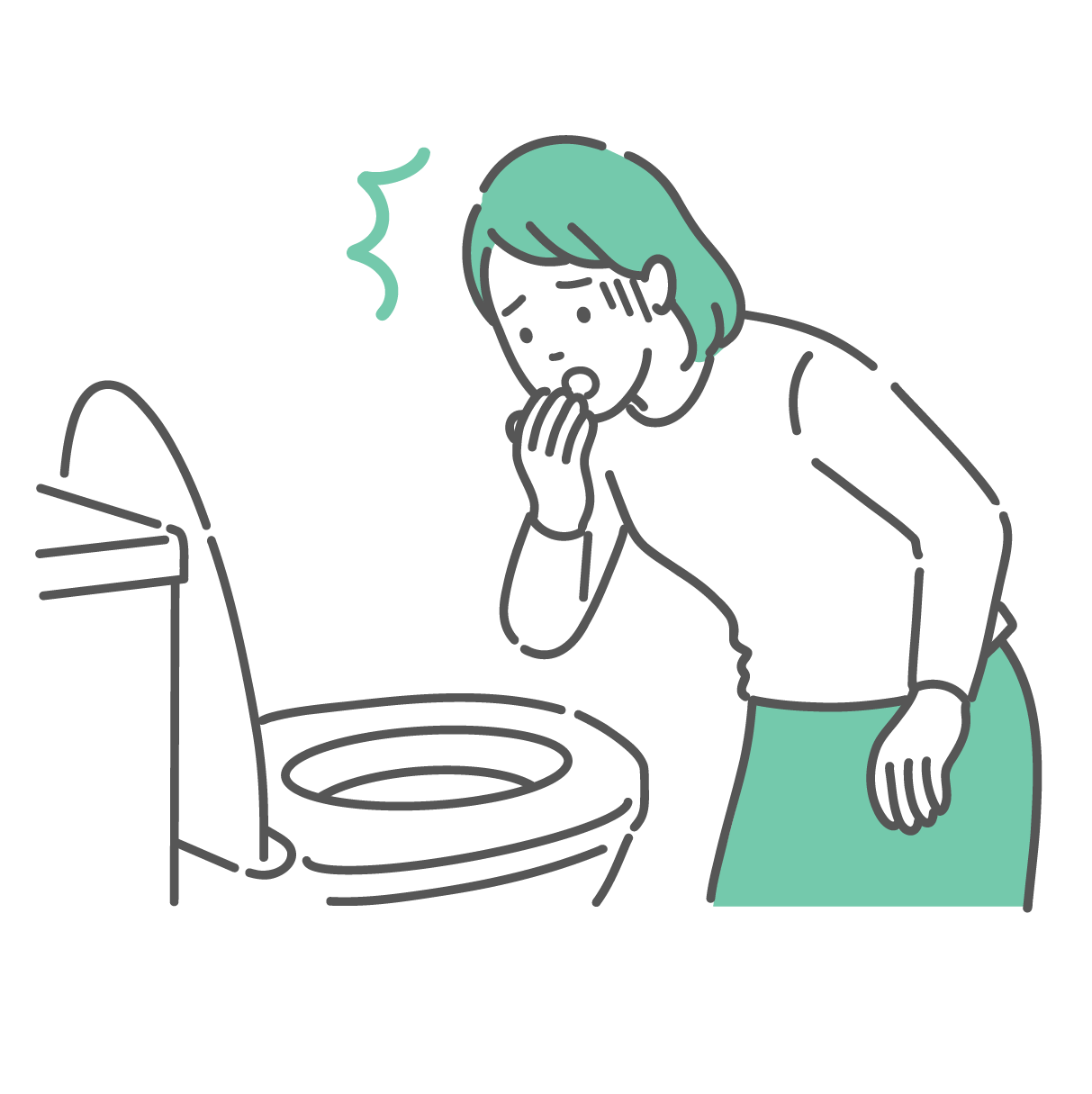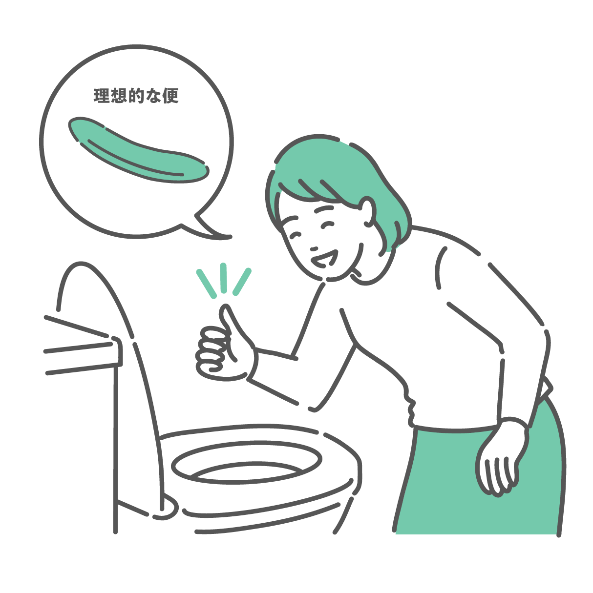 ダイエット・美容 トイレで便の状態を確認して安心する女性のイラスト(異常なし・便秘解消)