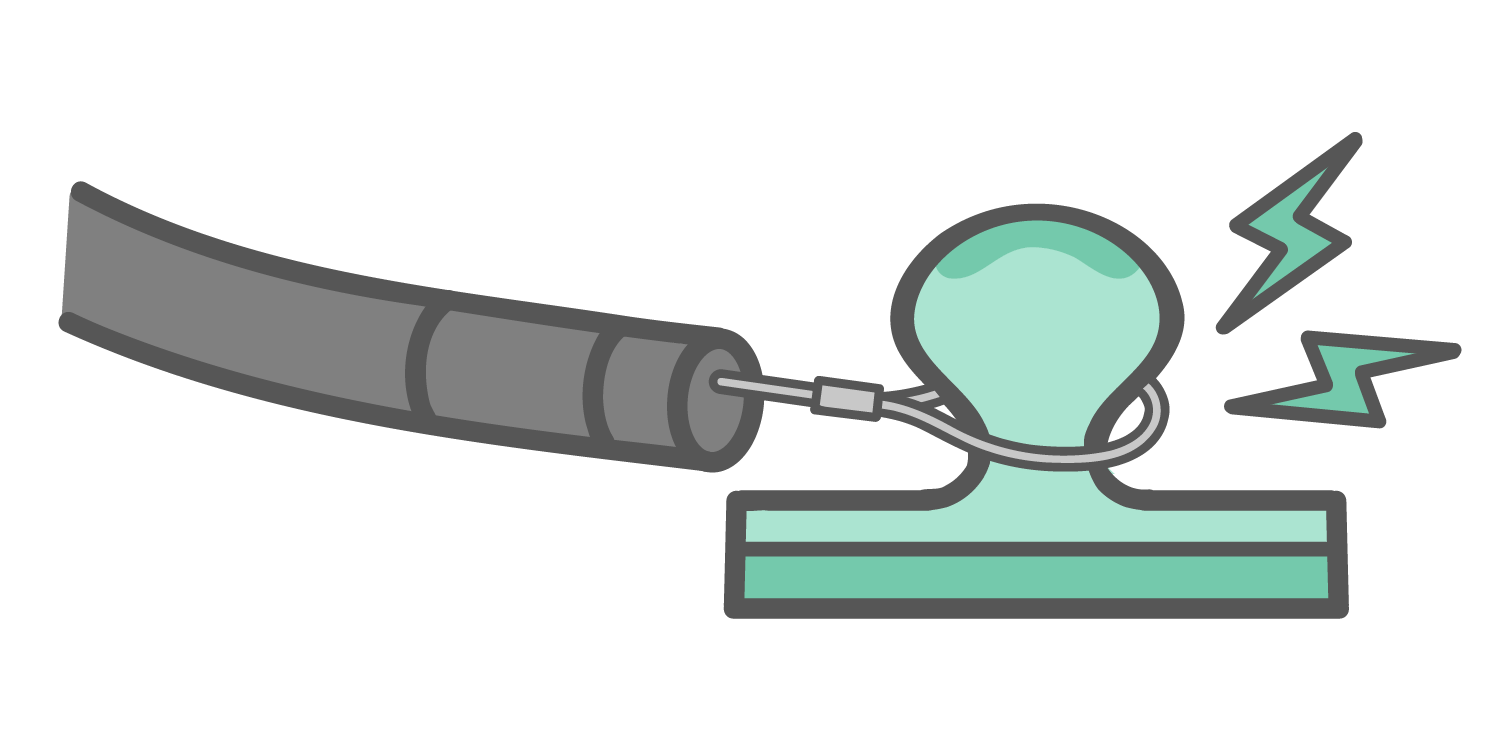 EMRの通電・切除(高周波電流で焼き切る)のイラスト