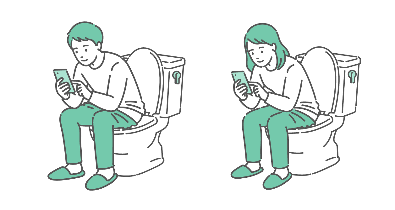 生活習慣 トイレでスマホを操作する男女のイラストセット(長居・ながらスマホ・生活習慣)