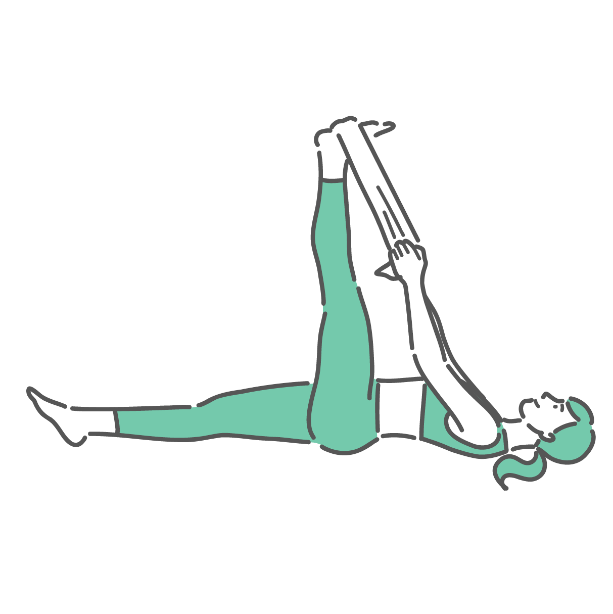 生活習慣・介護 仰向けで片足を上げ、太もも裏(ハムストリングス)を伸ばすストレッチ