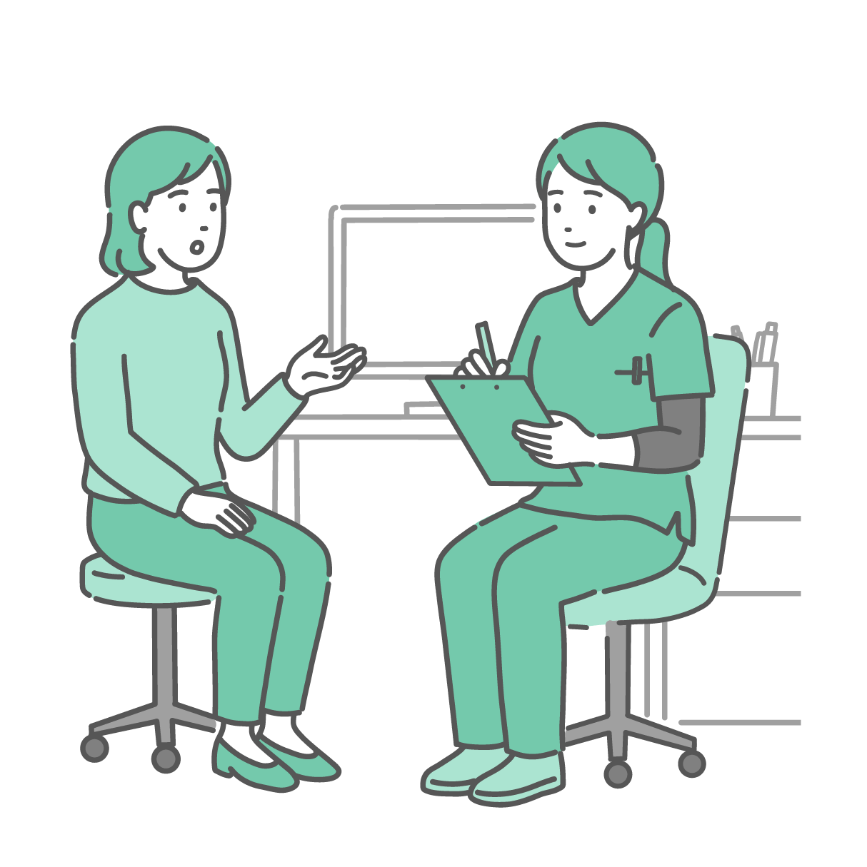 女性の健康・更年期 問診をする女性医師と女性患者(スクラブ・医療従事者)