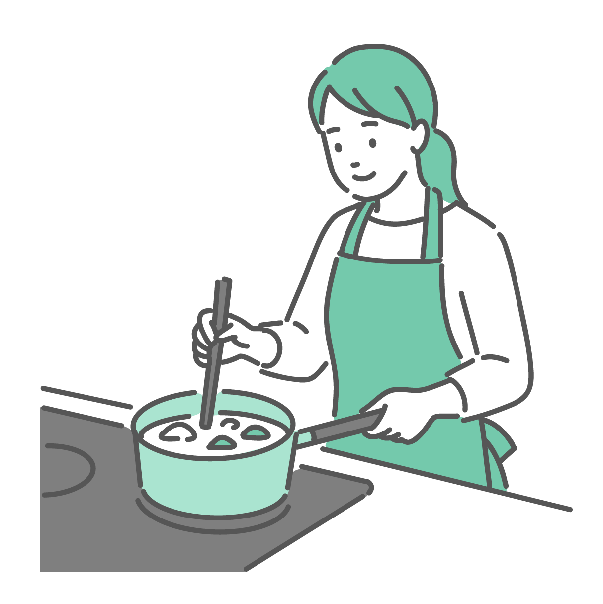 生活習慣 健康的な料理をする女性のイラスト(温活・食養生)