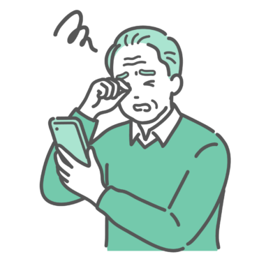 介護・福祉 スマホを見て目をこする高齢男性のイラスト(白内障・緑内障・老眼)