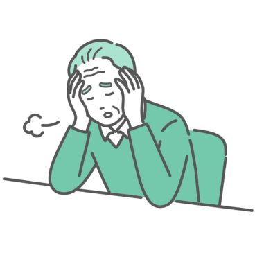 うつ・メンタル不調 強い倦怠感とストレスに悩む高齢男性のイラスト(認知症・うつ病・男性更年期)