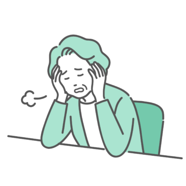 うつ・メンタル不調 強い倦怠感とストレスに悩む高齢女性のイラスト(認知症・うつ病・フレイル)