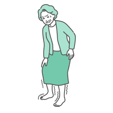 介護・福祉 足の痺れ・痛みに耐える高齢女性のイラスト(脊柱管狭窄症・糖尿病・坐骨神経痛)