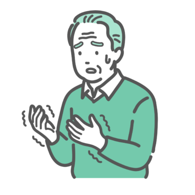 介護・福祉 手の痺れ・震えに戸惑う高齢男性のイラスト(パーキンソン病・脳梗塞・糖尿病)