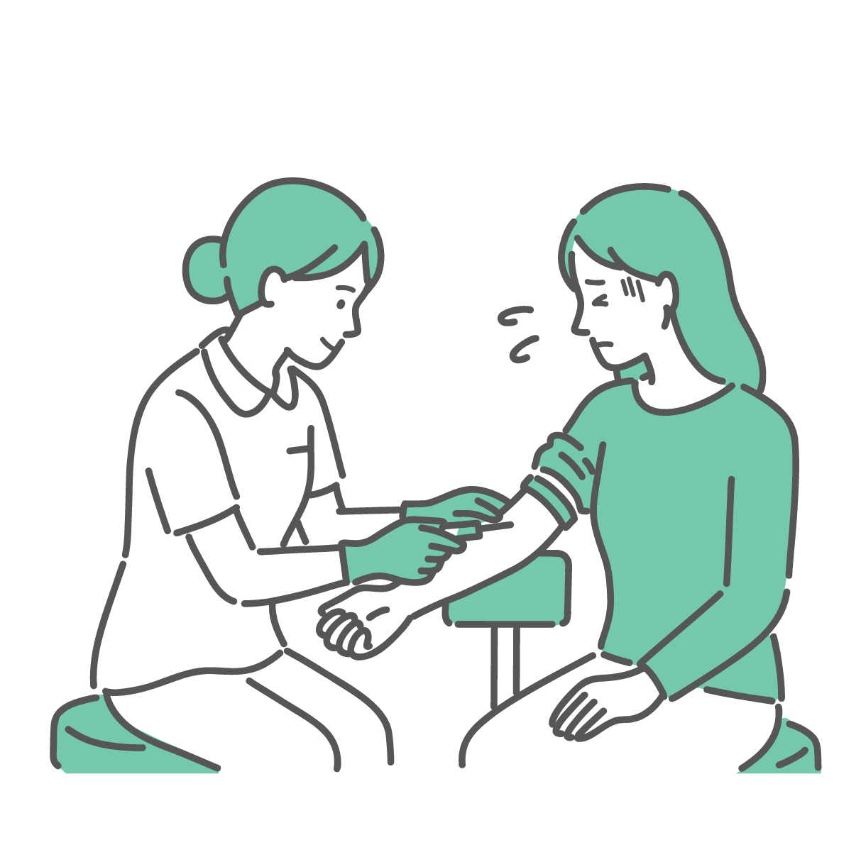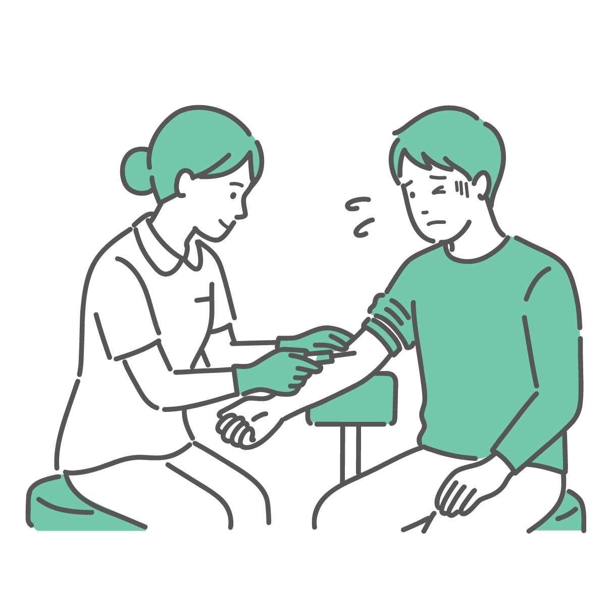 うつ・メンタル不調 採血・注射に緊張・恐怖を感じる男性患者のイラスト
