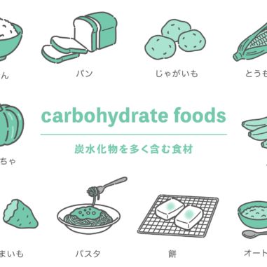 アイテム・アイコン 炭水化物を多く含む食材のイラストセット(ごはん・パン・麺・芋類)