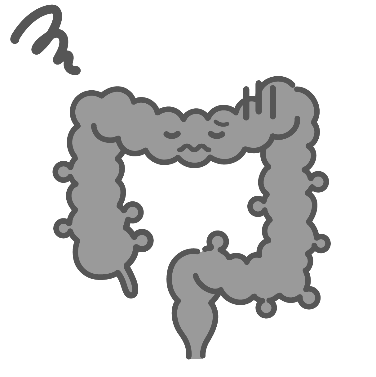 アイテム・アイコン 憩室症で不調を訴える大腸のキャラクター(モノクロ・不健康)