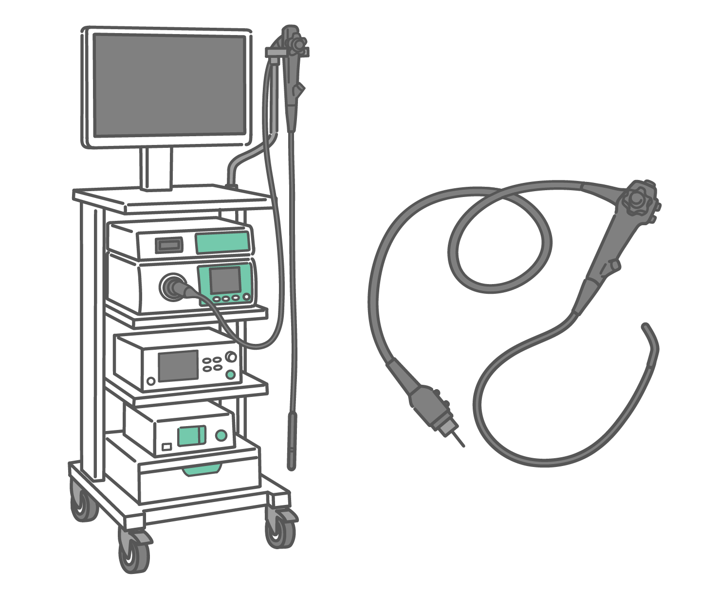 アイテム・アイコン 内視鏡システムとスコープのセットイラスト(医療機器一式)