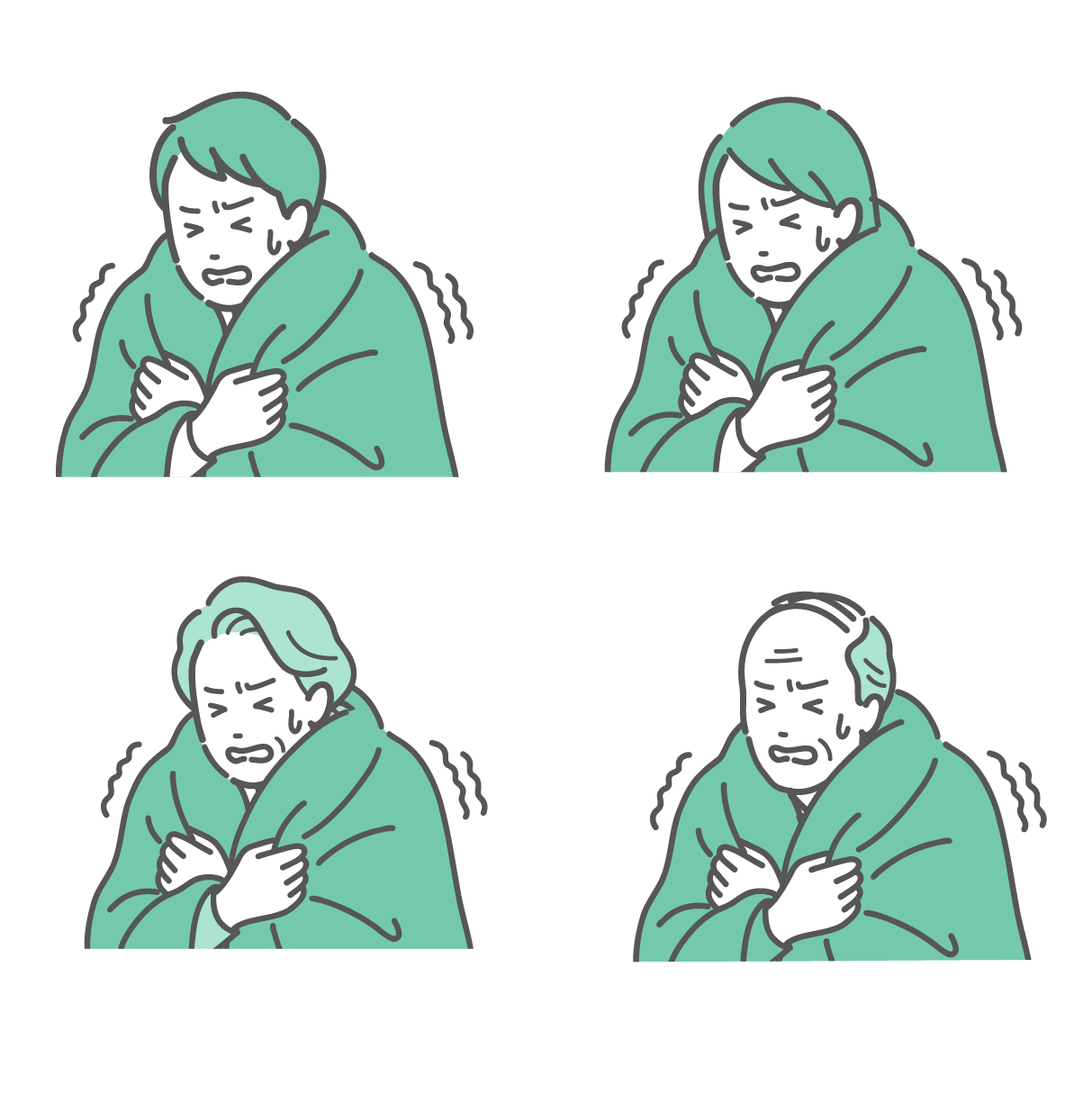 介護・福祉 寒気で震える人々のイラストセット(男女・高齢者)