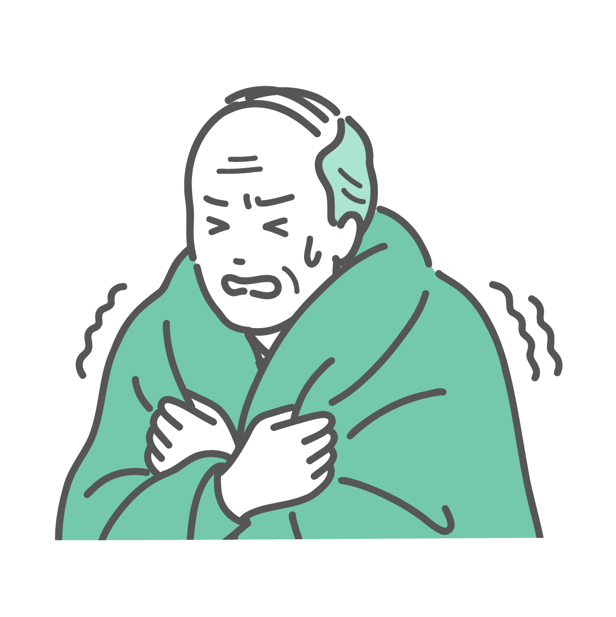 介護・福祉 寒気でガタガタ震える高齢男性のイラスト