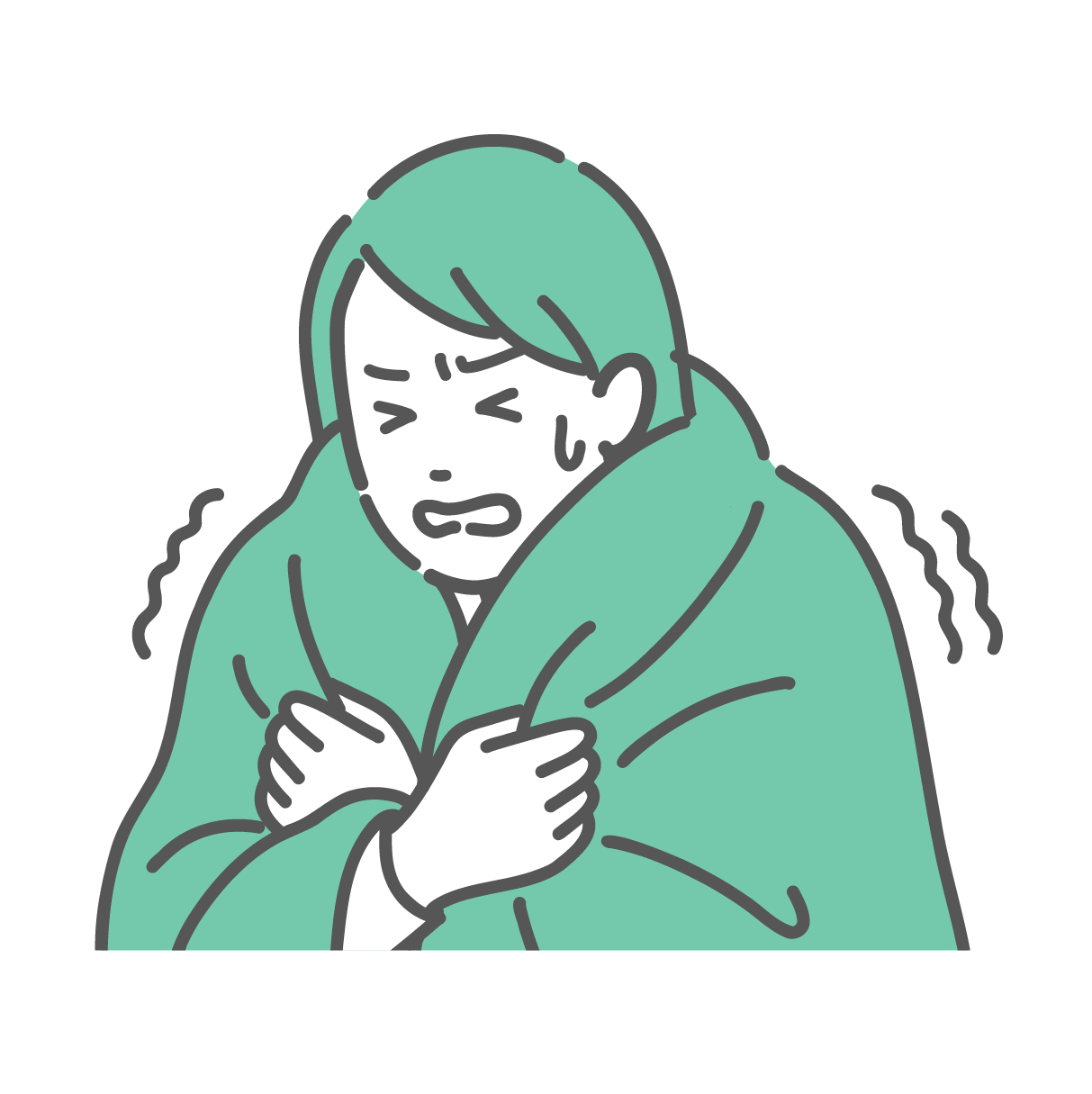 介護・福祉 寒気でガタガタ震える高齢女性のイラスト
