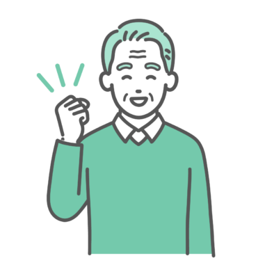 ガッツポーズをする高齢男性のイラスト(応援・成功・上半身)