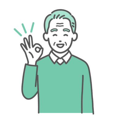 笑顔でOKサインを出す高齢男性のイラスト(承認・上半身)