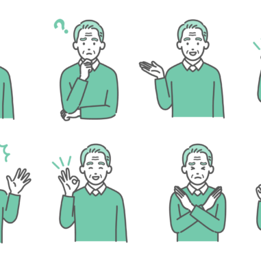 高齢男性の表情・ポーズイラストセット(上半身・8種類)