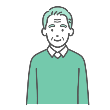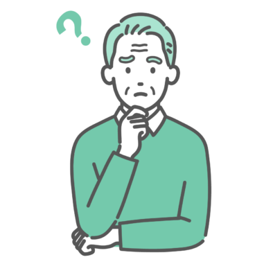 悩む・考える高齢男性のイラスト(ハテナマーク・上半身)