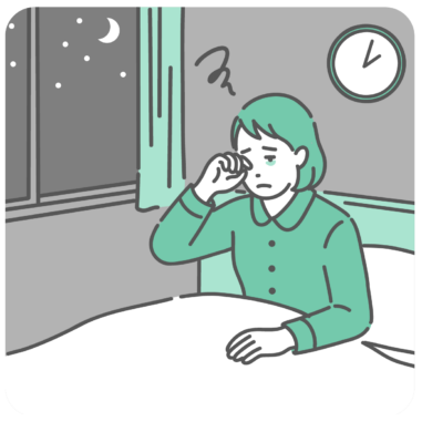 女性の健康・更年期 夜中に目が覚めて眠れない・中途覚醒の女性のイラスト(睡眠障害・不眠・更年期)