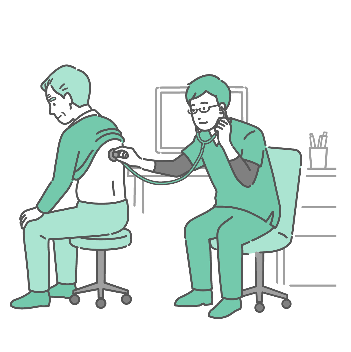 介護・福祉 スクラブを着用した男性医師による高齢男性の背中の聴診イラスト