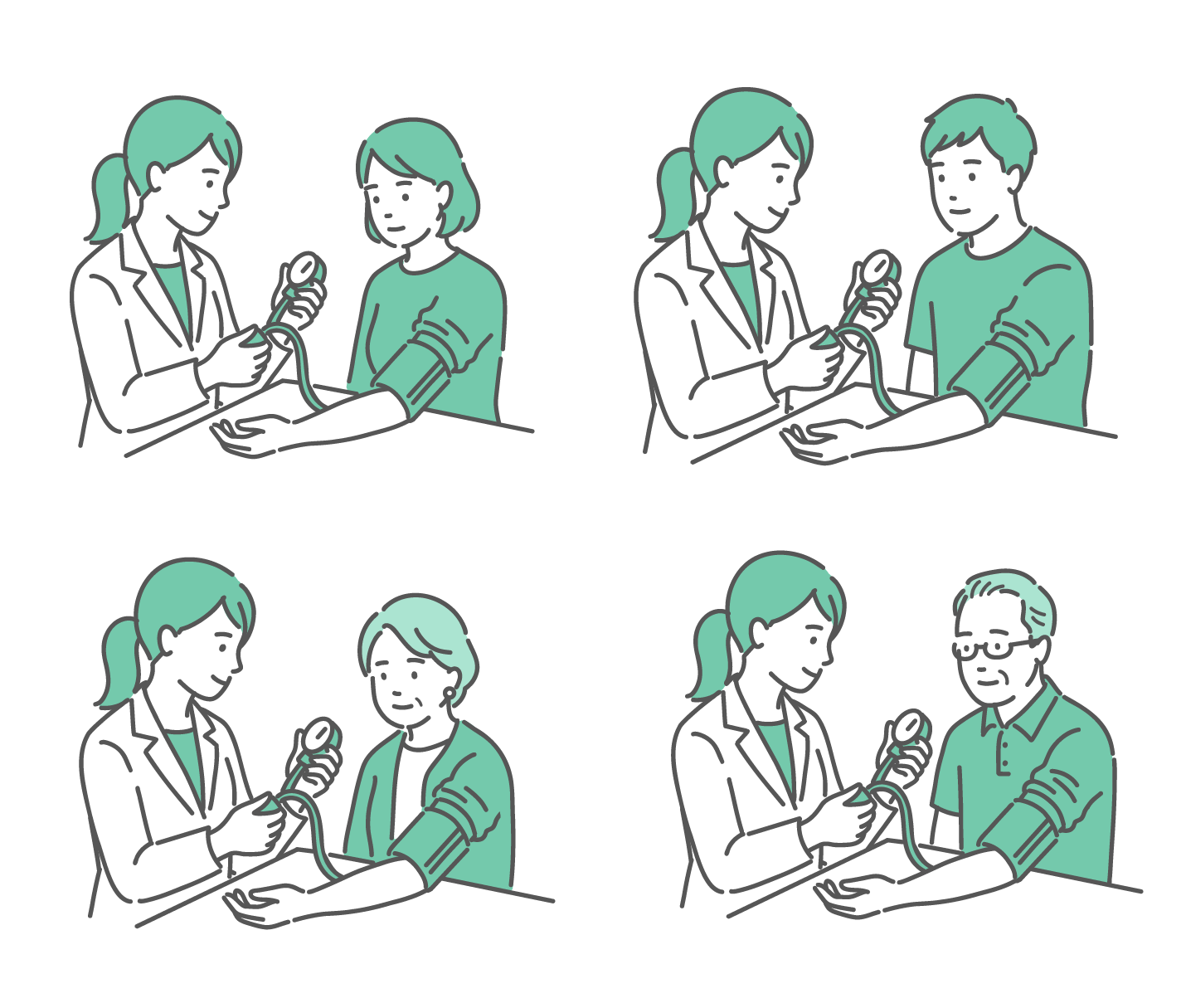 血圧測定のバリエーションイラストセット(全年齢・男女)