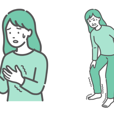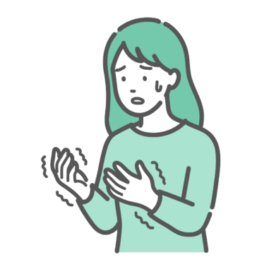 女性の健康・更年期 手の痺れ・震えに戸惑う女性のイラスト(更年期障害・手根管症候群・リウマチ)