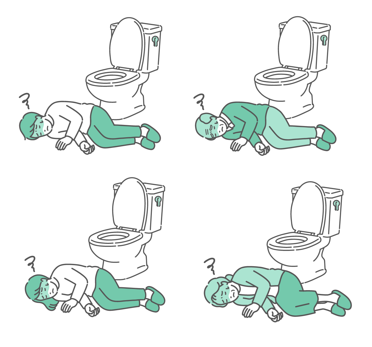 介護・福祉 トイレで倒れている人々のイラストセット(ヒートショック・失神・意識不明)