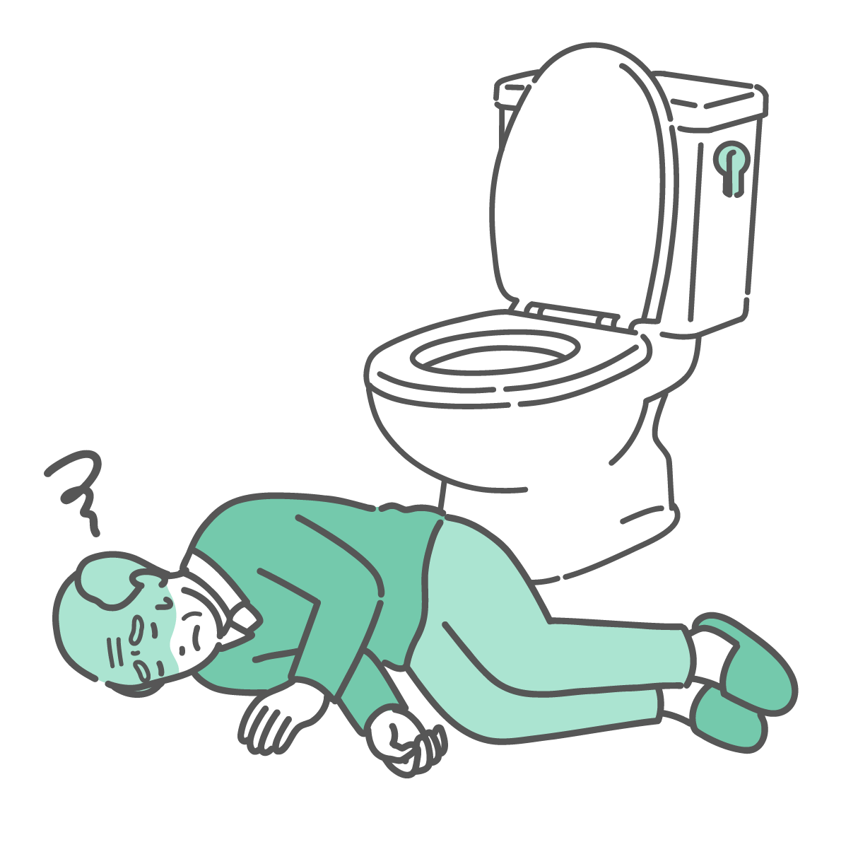 介護・福祉 トイレで意識を失い倒れている高齢男性のイラスト(ヒートショック・失神)