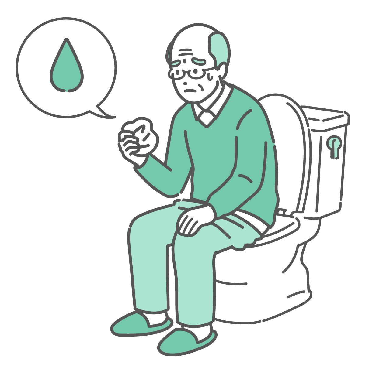 介護・福祉 トイレで紙を見て健康チェックする男女・高齢者のイラストセット(血便・検診・早期発見)