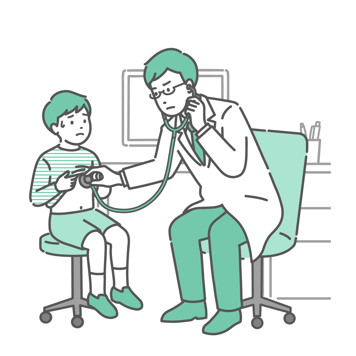 小児科・子供の健康 聴診器で男の子を診察する男性医師(白衣・小児科・子供)