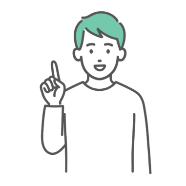 指差し・ポイントを解説する若い男性のイラスト(ひらめき・上半身)